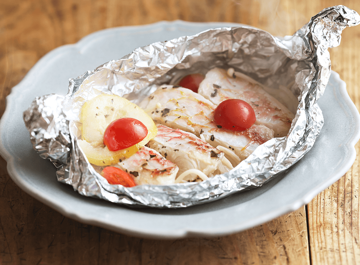 ヴァポーレとは蒸し料理の意味。 蒸し焼きにすると身がふわふわに仕上がるよ!